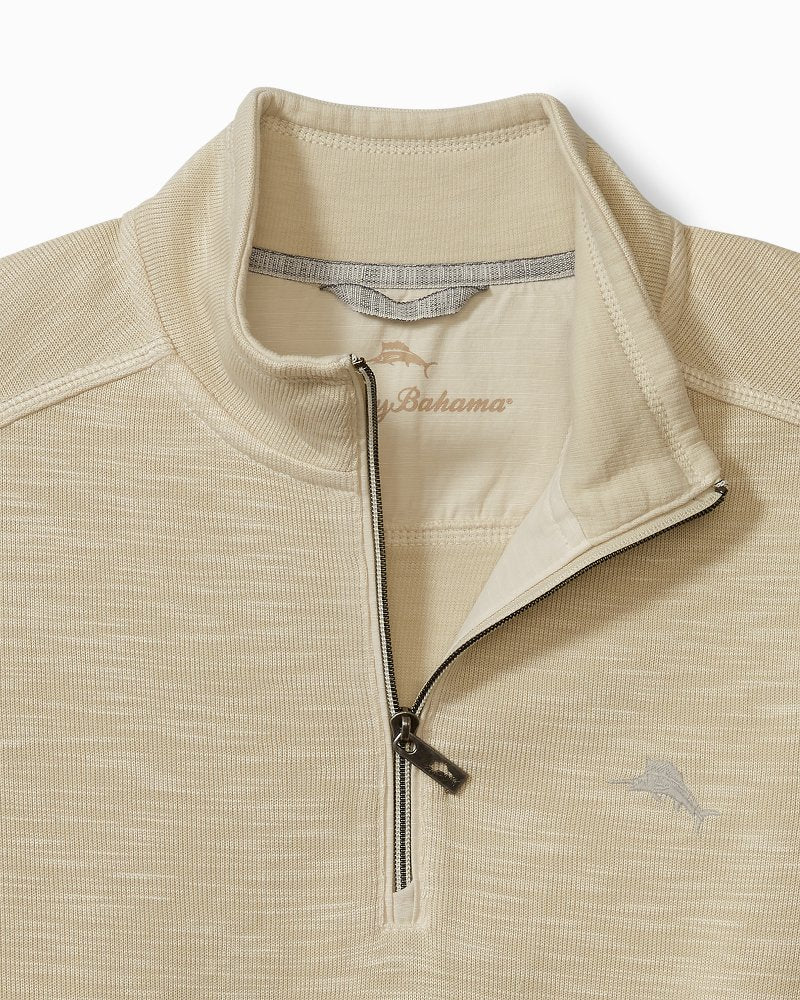 Intricate, monochromatic embroidery of our signature Marlin logo showcases our expertly detailed craftsmanship on the back of the fan-favorite Tobago Bay half-zip. An artistic update to the style everyone knows and loves, this look elevates your everyday on a whole new level.