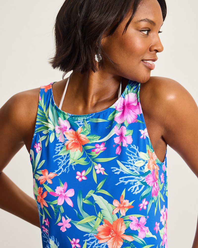 Crafted from our flattering swim fabric and complete with a dainty flounce hem, this tropical print coverup dress takes effortless beach-day charm to stylish new places.