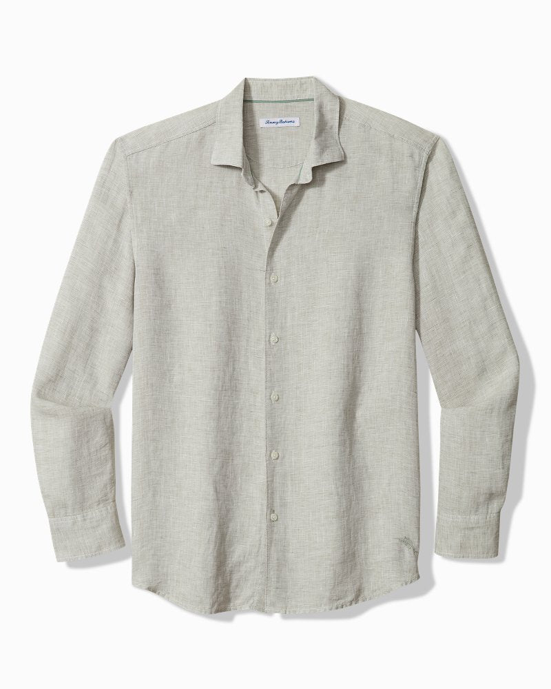 Sophisticated ease takes form in this naturally breathable linen shirt, featuring a subtle textured pattern, pearl-hued buttons, and a tailored fit that make it effortless for any occasion.