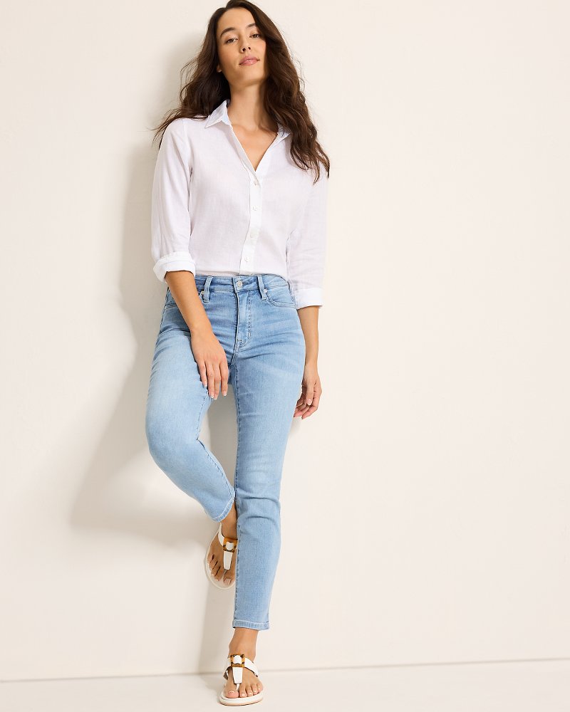 Designed to be slimming in all the right places, this polished pair of high-rise jeans maximizes comfort in an ultra-flattering silhouette with plenty of stretch.