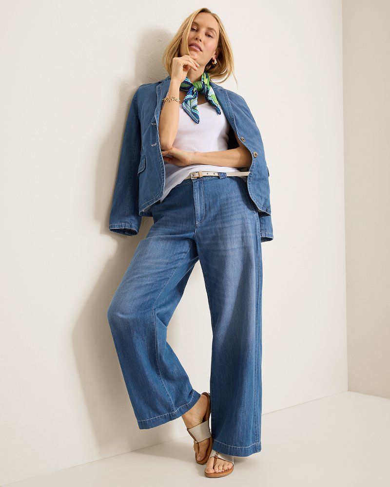 Intended for casual mix-and-match outfitting—or more refined set-dressing—these lightweight denim trousers channel laid-back elegance with an airy drape and leg-lengthening silhouette.