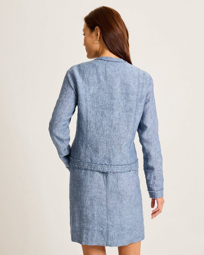 We've fashioned our fabulously smooth linen into a lightweight layer that's both elevated and easygoing. Finished with raw-edge trim and patch pockets that give the look a casual sensibility, it's the perfect jacket for throw-on-and-go moments.